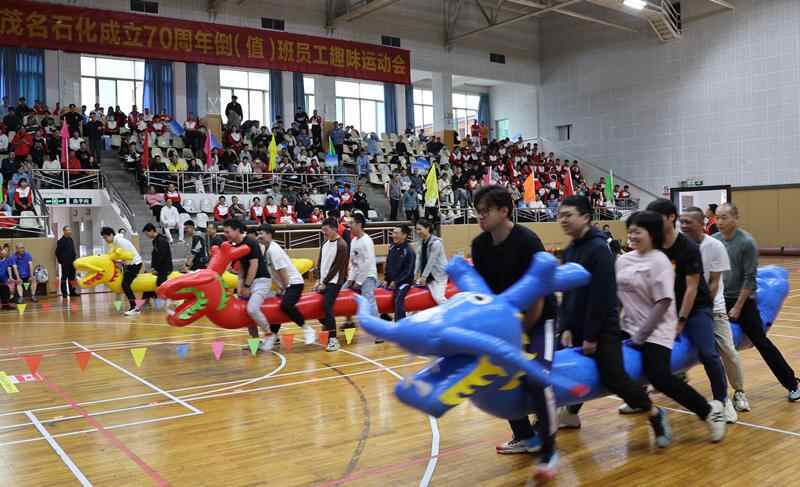3月2日上午,茂名石化在体育馆举办纪念公司成立70周年倒(值)班员工趣味运动会,来自炼油、化工等10个单位的31支队伍600多名倒值班员工参加。