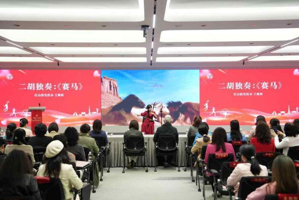 文艺盛宴精彩纷呈,燃情展演巾帼才华。来自红山街的基层妇女干部王琳妍带来二胡独奏《赛马》,在激昂的弦乐中感受传统与现代的融合之美。