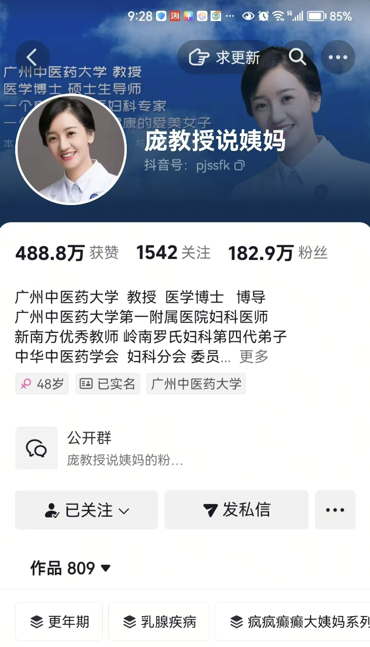 由于认认真真做科普,实实在在为患者着想,没有人设,没有带货,庞教授得到了网友们的认可。在2023年,“庞教授说姨妈”这个IP在全网的粉丝已经突破了500万。