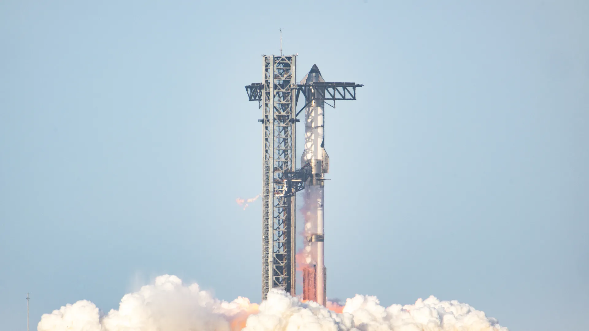 太空探索技术公司直播画面显示,美国中部时间6日17时30分许(北京时间7日7时30分许),“星舰”从位于得克萨斯州博卡奇卡的基地发射升空。两分多钟后,火箭第一级“超级重型”助推器和第二级飞船成功分离。发射后约7分钟,助推器返回发射场,被发射塔上的机械臂“夹住”,又一次实现在半空中“捕获”回收。但火箭第二级飞船失控,随后与地面团队失去联系,飞船直播画面中断。