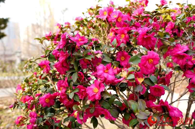 3月7日,西安兴庆宫公园内,茶梅盛开。人民网记者 孙挺摄