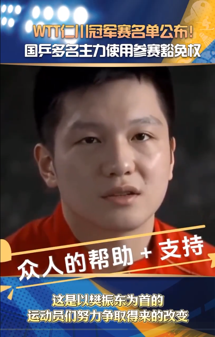WTT出台新规首次应用,给予球员每年两次豁免参赛机会 ,这是以樊振东为首的队员们努力争取来的改变!你怎么看这次国乒主力的缺席?