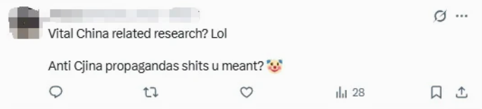 在该所X平台账号转发《华尔街日报》报道的评论区,有人说:“重要的中国相关研究?哈哈哈,你说的是反华宣传吧。”
