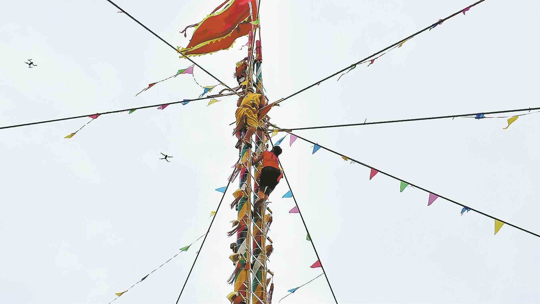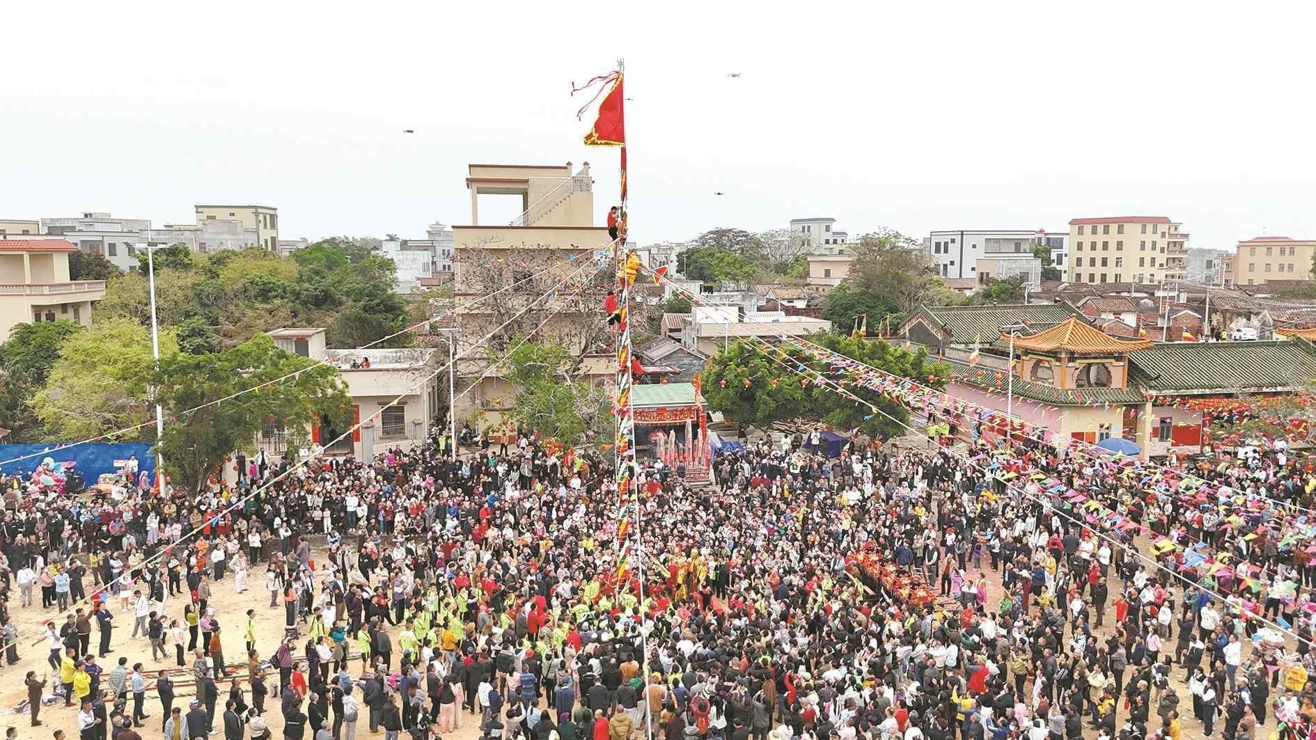 湛江麻章省级非遗“麒麟村爬刀梯”表演引千人围观