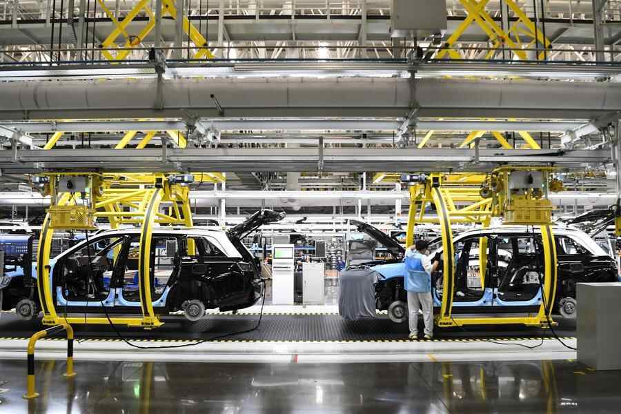 在广西柳州市上汽通用五菱精益智造工厂,工人在生产线上工作(2024年5月9日摄)。新华社记者 金皓原 摄