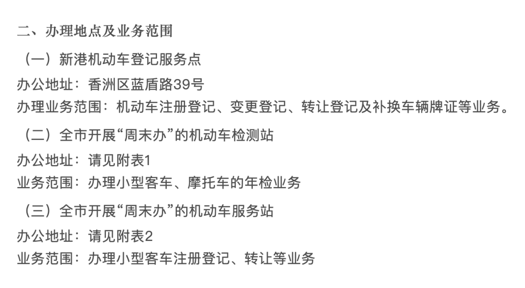 办理业务请携带身份证明、行驶证等相关资料。如需到新港机动车登记服务点“周末办”请提前在“珠海交警”微信平台预约。