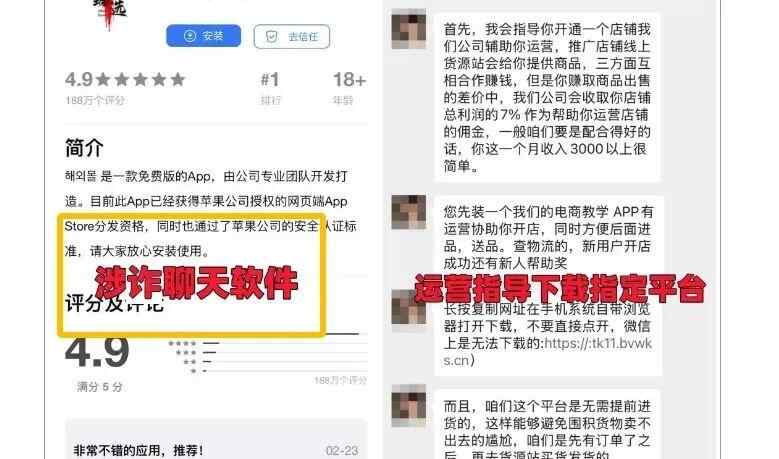 诈骗分子会自称客服,主动添加受害人微信,引导受害人通过链接下载小众聊天软件,为后续诈骗行为提供私密的沟通渠道。