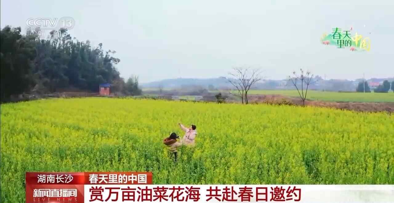 春光无限好,赏花正当时。眼下,湖南长沙望城区茶亭镇的12000亩油菜花竞相开放,田野变成金色的花海,游客在万亩花海中感受美好时光。