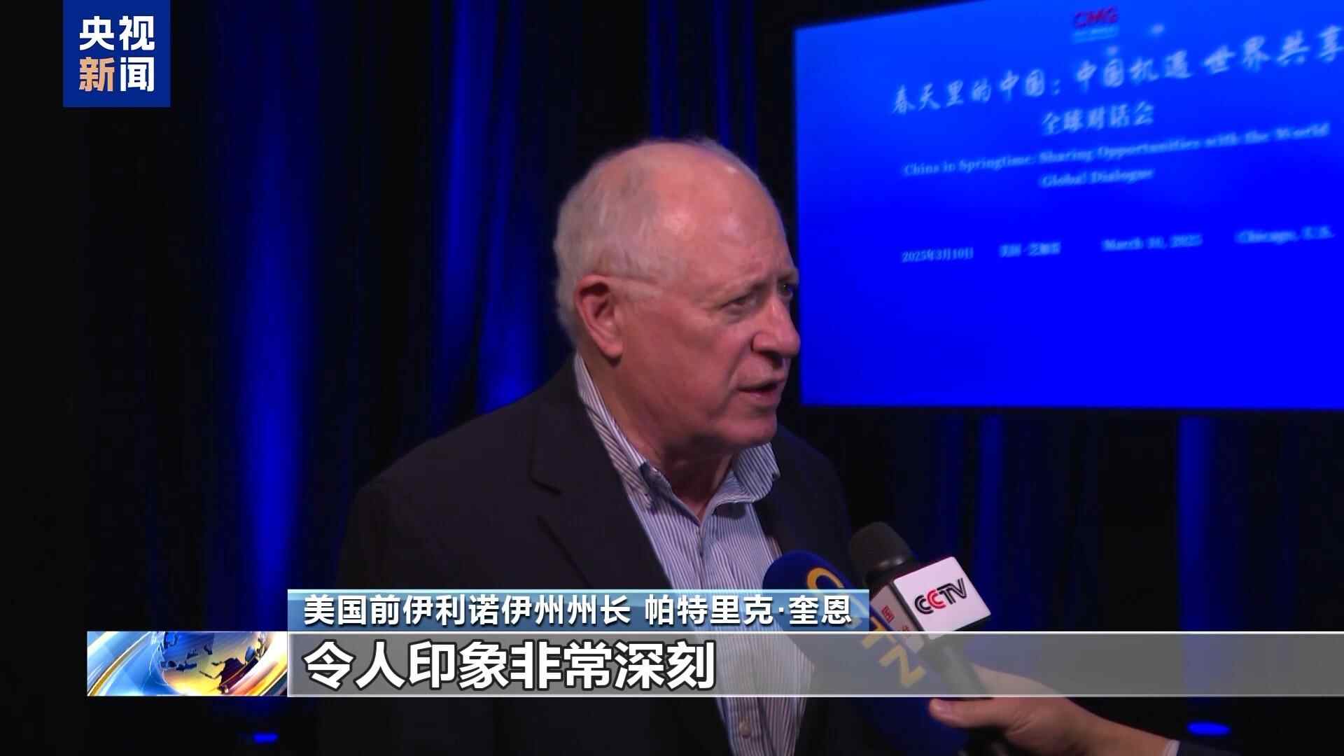 美国前伊利诺伊州州长 帕特里克·奎恩:中国在一些领域的创新发展令人印象非常深刻,特别是太阳能、风能、绿色能源储备和效率方面。