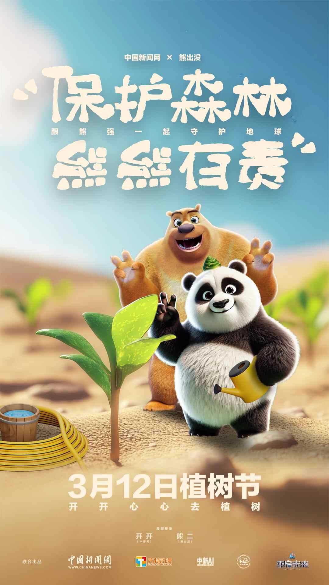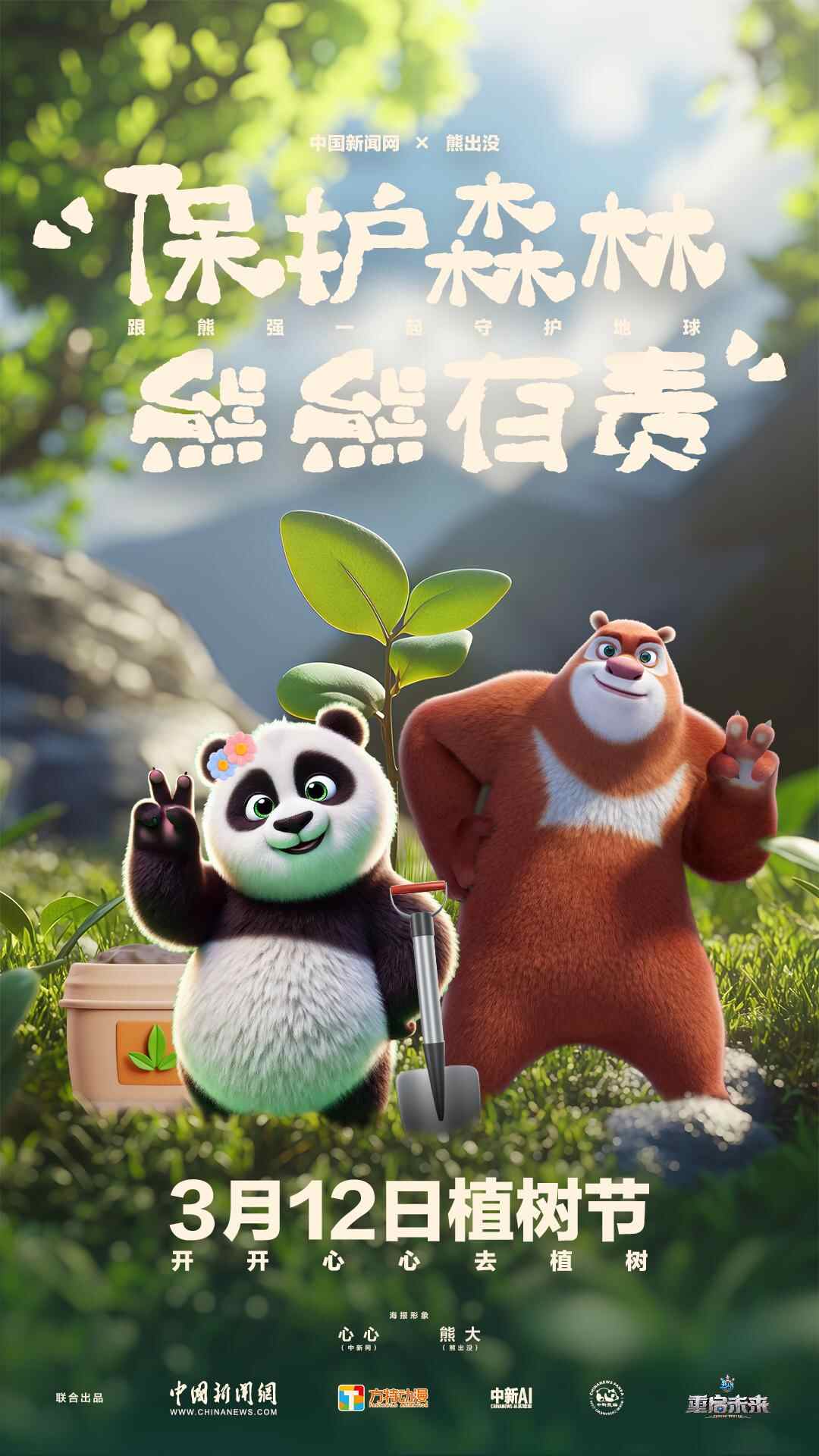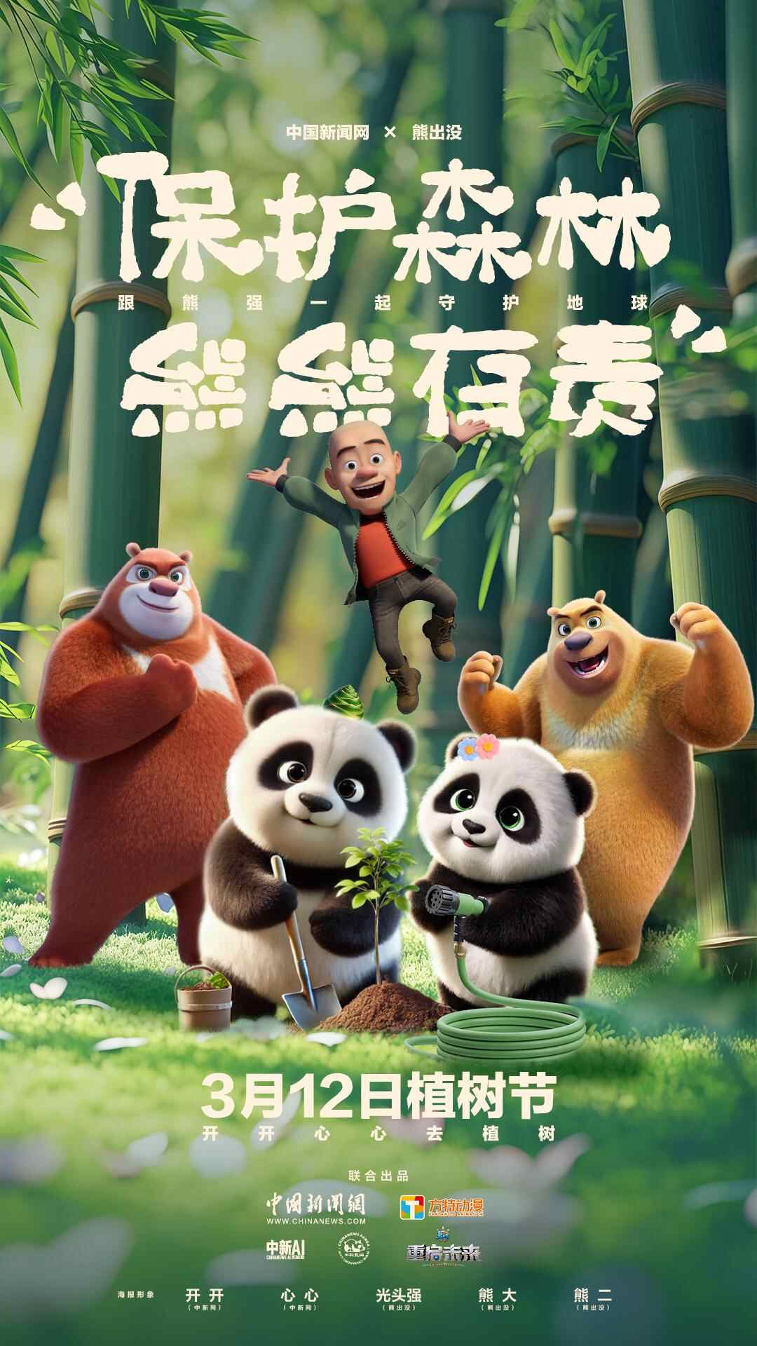 保护森林,熊熊有责!快跟着熊熊们一起行动,种树、护林、爱地球!