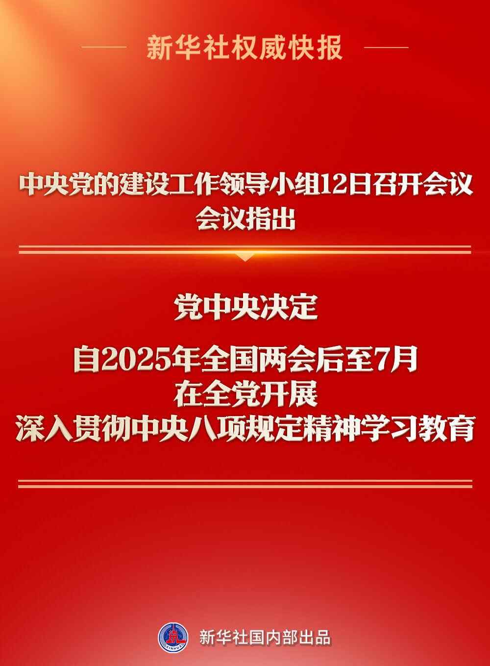 会议指出,党中央决定,自2025年全国两会后至7月在全党开展深入贯彻中央八项规定精神学习教育。