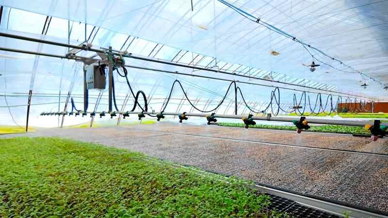 育苗基地内,移动苗床在轨道上平稳运行。白腾摄