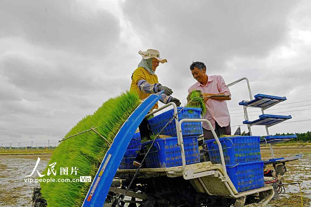 在海南省乐东黎族自治县黄流镇,农民们正驾驶着插秧机械在稻田中穿梭忙碌。当地积极抢抓农时,全力进行插秧作业,田间地头呈现出一派繁忙而有序的农忙景象。韩峻摄(人民图片网)