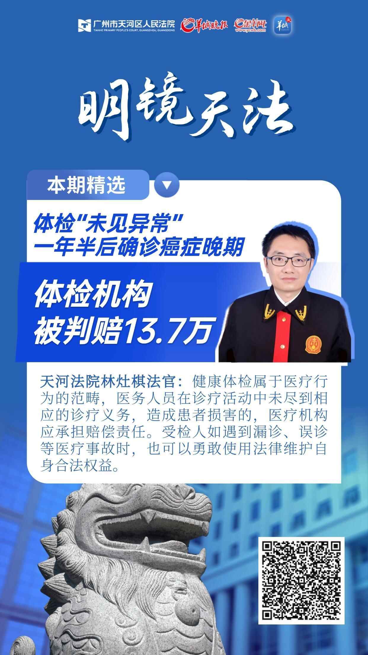 近日,广州市天河区人民法院公开了一起因体检漏诊引发的纠纷案件。涉案体检机构因未能及时发现原告肺部病变,导致其错失最佳治疗时机,被判赔13.7万元。