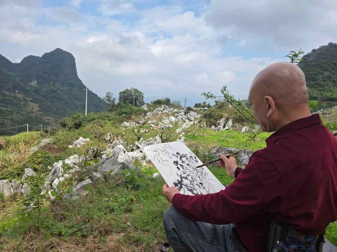 上午在李洞看庄小尖先生写生时,说阁下此画可以从各个角度来观看,他说是的,好的画,从各个角度来看都是成立的。