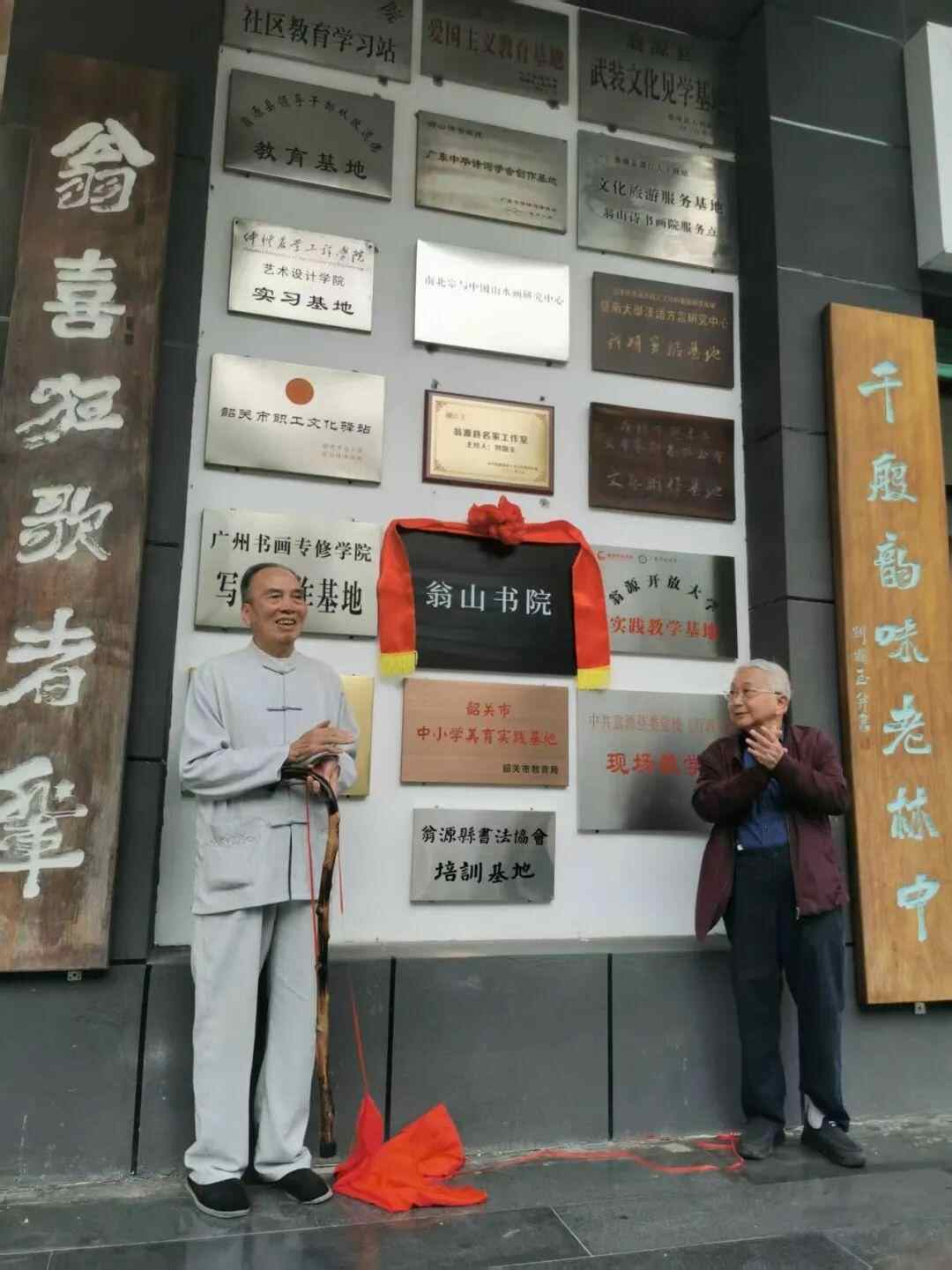 下午,在翁山诗书画院,“翁山书院”正式揭牌。刘斯奋先生、刘国玉先生轻拉红绳,“翁山书院”四枚宋体字闪亮发光。