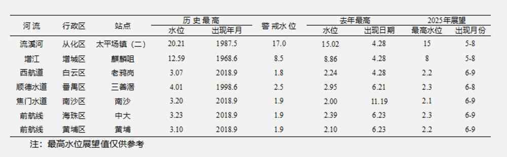 结合多种数理统计及预测方法,广州水文分局研判,预计2025年广州为平水年,年降雨量与近常年相比变化不大。从预测情况看,广州需关注增江、流溪河区域可能出现的常遇洪水情况;广州上游的西江可能出现五年一遇的洪水、北江可能出现十年一遇的洪水;部分中小河流可能面临二十年一遇洪水。