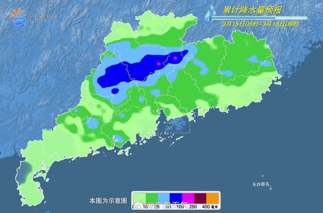 ◆预计,15日白天广东省有8~10级雷暴大风、局地冰雹和强降水天气,其中粤北和珠江三角洲市县有大雨局部暴雨到大暴雨。受较强冷空气影响,15-16日,广东省气温自北向南下降6~9℃,天气转寒凉,广东省海陆风力加大。