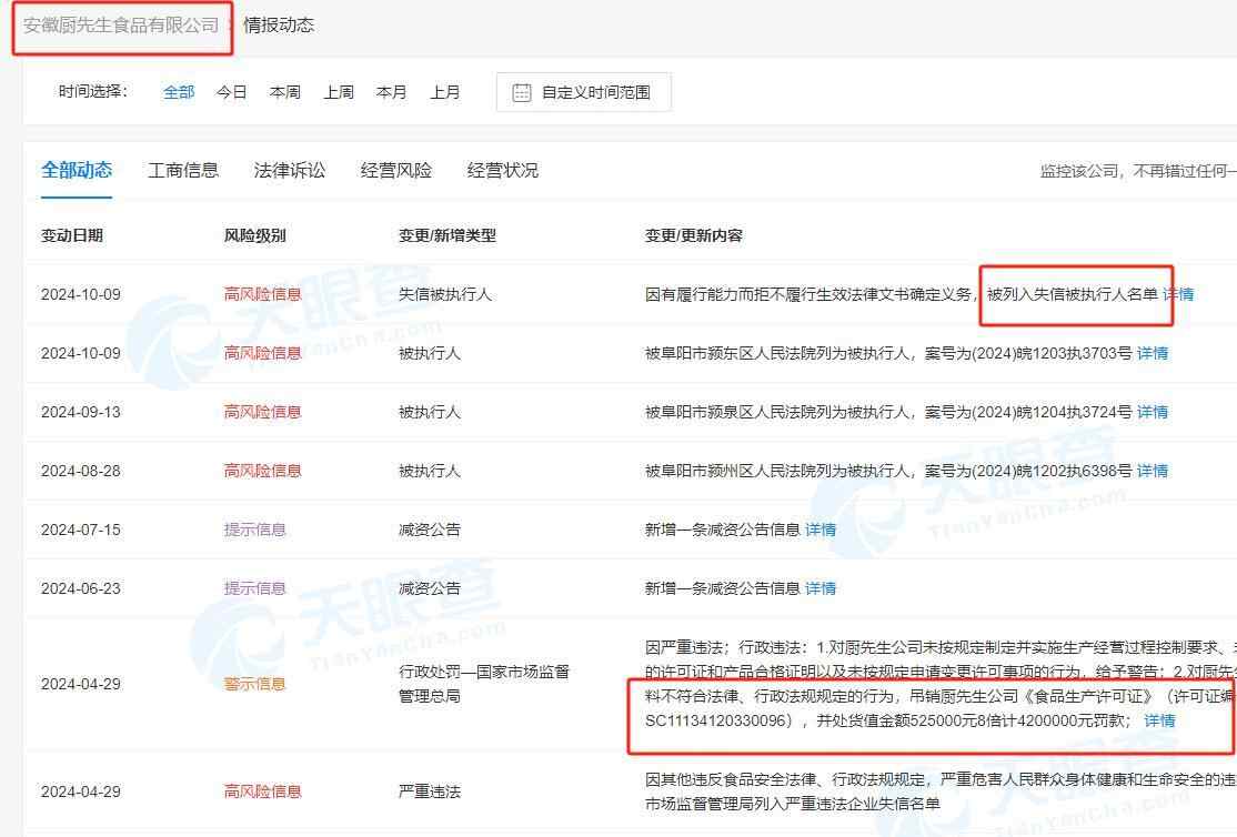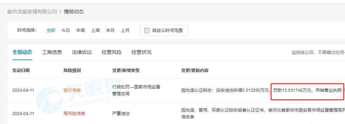 天眼查信息显示,上述问题涉及的企业在过去一年里,有些被吊销执照、有些被列入严重违法黑名单、有些被重罚数百万元,还有公司被消费者起诉。