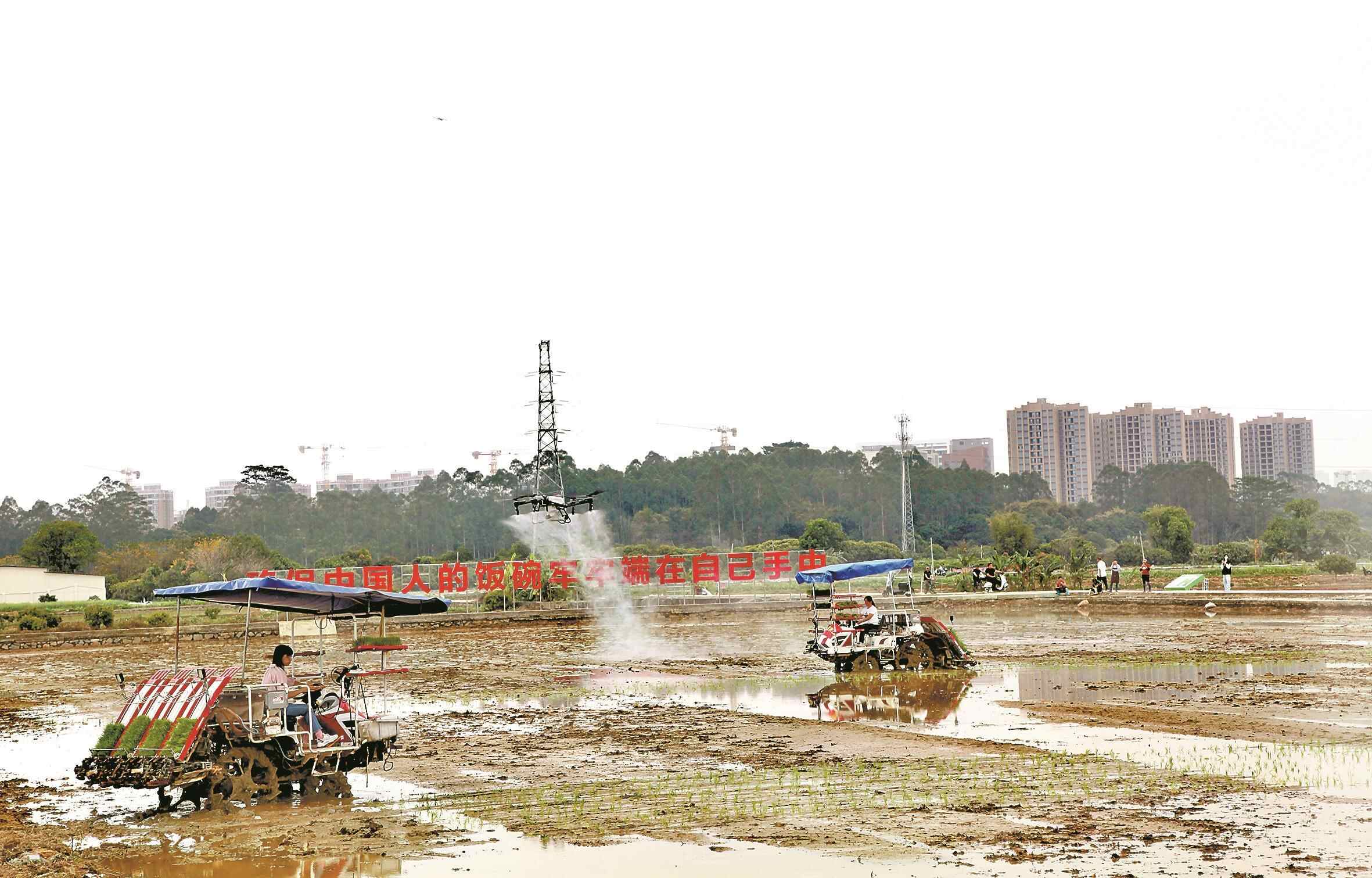 为落实好今年的春耕春播任务,广州市预计投入农机总动力100.5万千瓦,农机具3.9万台。同时,全力抓好技术示范,大力推广良种、良机、良法,优化品种结构和种植技术。实施“穗种强芯”攻关行动,培育高产稳产、品质优良、多抗广适的水稻新品种,发布粮食主导品种11个、粮食主推技术5项。引导广大农户和新型农业经营主体科学选用省农科院“粤香430”“南晶香占”、市农科院“二广香占3号”等优质品种,促进大面积单产提升。