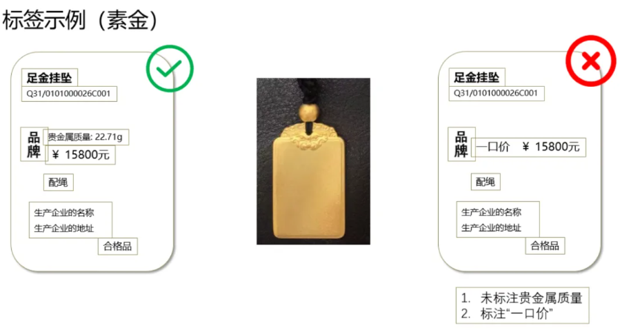 广西壮族自治区柳州市融安县市场监管局的一则案例显示,2024年9月10日,执法人员曾到两家黄金珠宝店开展检查。经查,其中一家黄金珠宝店待售的部分足金戒指等首饰标识牌上只有产品名称、价格等信息,没有标注重量;另一家黄金珠宝店把标识牌上的克重信息隐藏了。依据《中华人民共和国消费者权益保护法实施条例》第九条、第十条的规定,执法人员责令上述两家黄金珠宝店在销售黄金等贵重商品时,要主动告知黄金克重并出示克重标签,在质保单、销售单上必须标注黄金克重。