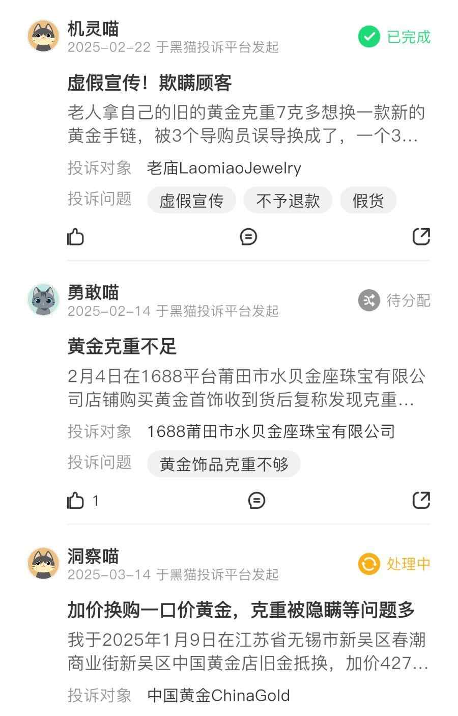 然而,黄金热潮的另一面,市场乱象滋生,黄金首饰“售前”与“售后”都存在着陷阱。比如,有消费者在购买“一口价”产品时,被刻意隐瞒黄金克重,在购买后遇到售后问题时,又被频频引导“以低换高”,本想退换维修,却被“补了差价”。