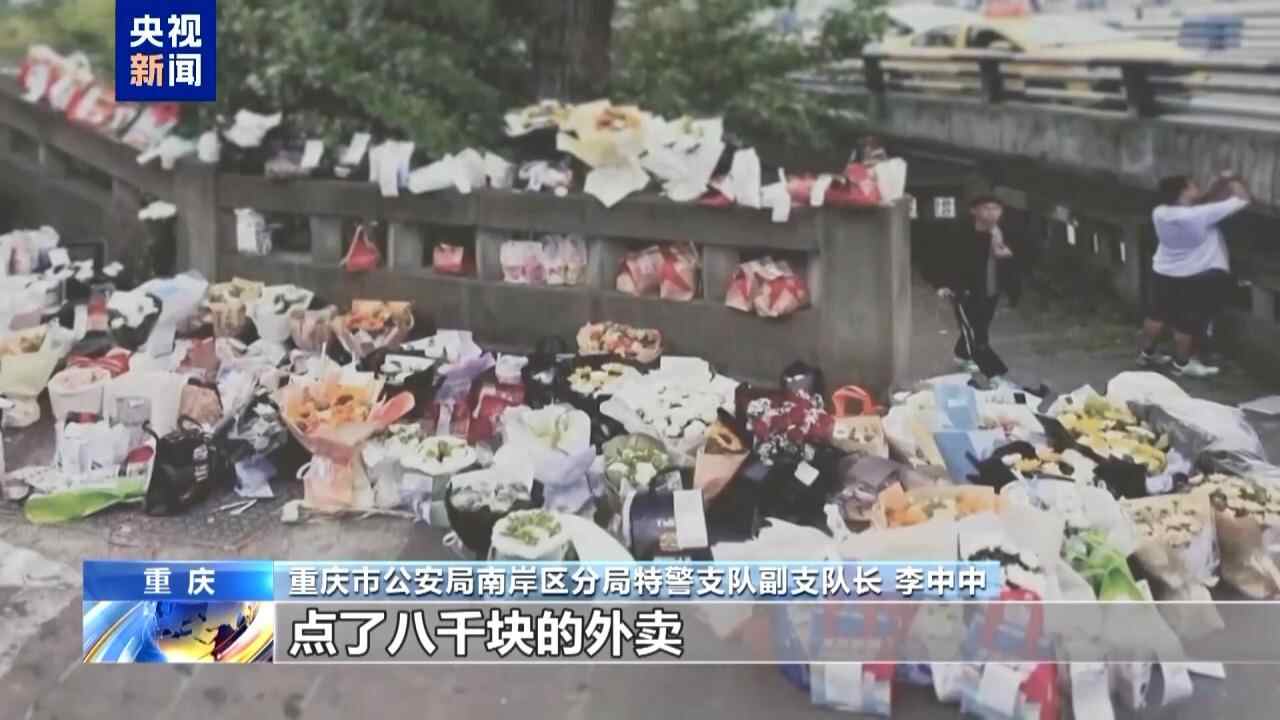 重庆市公安局南岸区分局特警支队副支队长 李中中:有个大哥很支持或者说比较可怜“胖猫”,点了八千块的外卖,摆了一桥。八千块的食物就躺在那里白白地浪费掉了,我不认为这个事情是高尚的,恰恰这种事情是该被鞭挞的,应该让全社会引起反省。