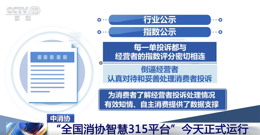 央视网消息:3月15日是“3·15”国际消费者权益日,“全国消协智慧315平台”15日正式上线运行。