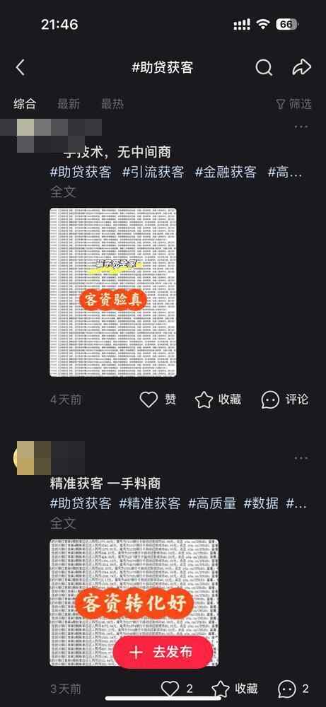 记者通过帖子内容发现,这些帖子下面有一个话题是“助贷获客”。目前已有103.1万浏览量,2.7万讨论。该话题下的内容多为如何帮助企业获客,用户信息等。