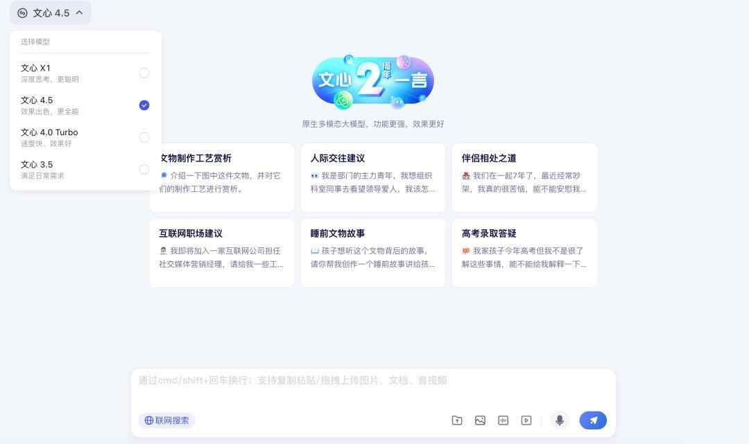 同时,百度表示,文心大模型4.5已上线百度智能云千帆大模型平台,企业用户和开发者登录即可调用API;文心大模型X1也即将在千帆上线。百度搜索、文小言APP等产品,将陆续接入文心大模型4.5和文心大模型X1,为用户带来更多元的体验。