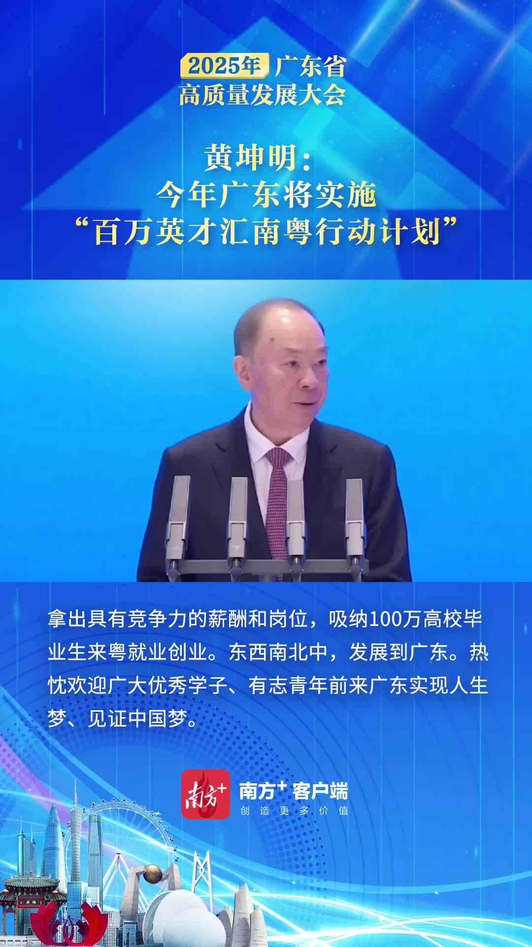 在2025年全省高质量发展大会上,省委书记黄坤明现场发出邀请,宣布今年广东将以“粤聚英才、粤见未来”为主题,实施“百万英才汇南粤”行动计划,拿出具有竞争力的薪酬和岗位,吸纳100万高校毕业生来粤就业创业。