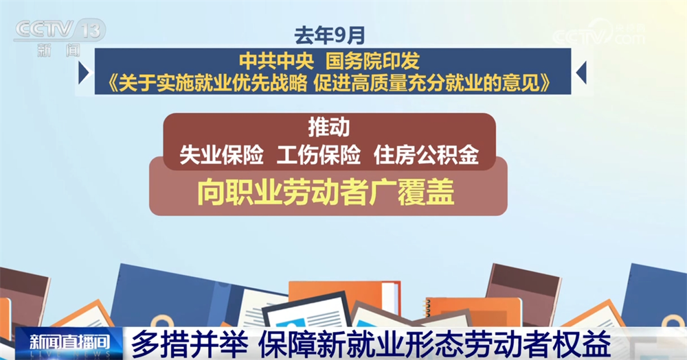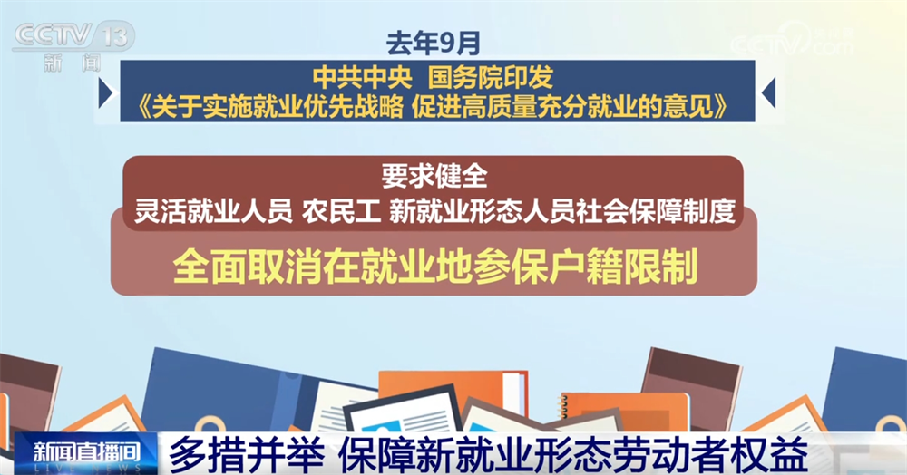 去年9月,中共中央、国务院印发《关于实施就业优先战略 促进高质量充分就业的意见》,要求健全灵活就业人员、农民工、新就业形态人员社会保障制度,全面取消在就业地参保户籍限制,推动失业保险、工伤保险、住房公积金向职业劳动者广覆盖。