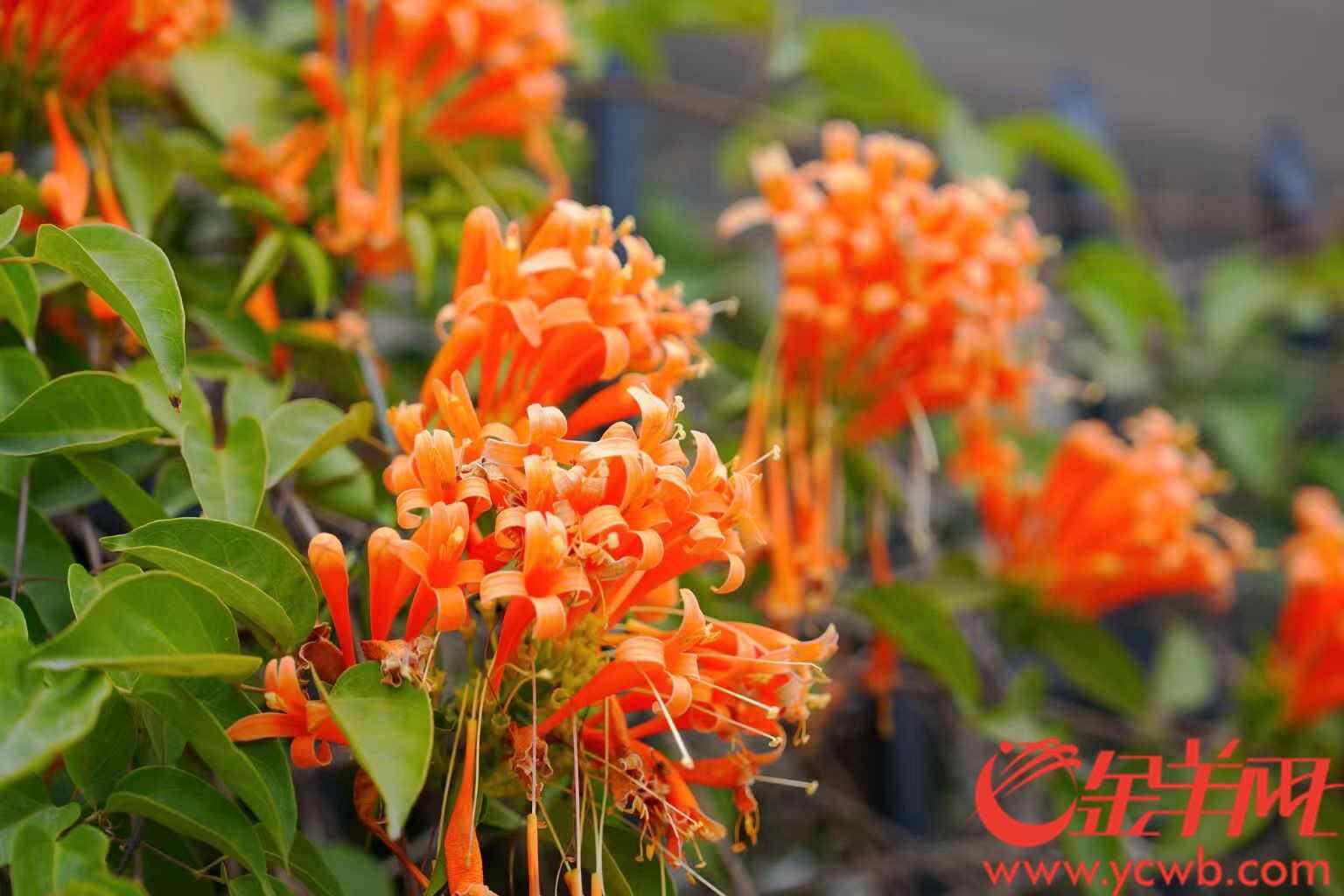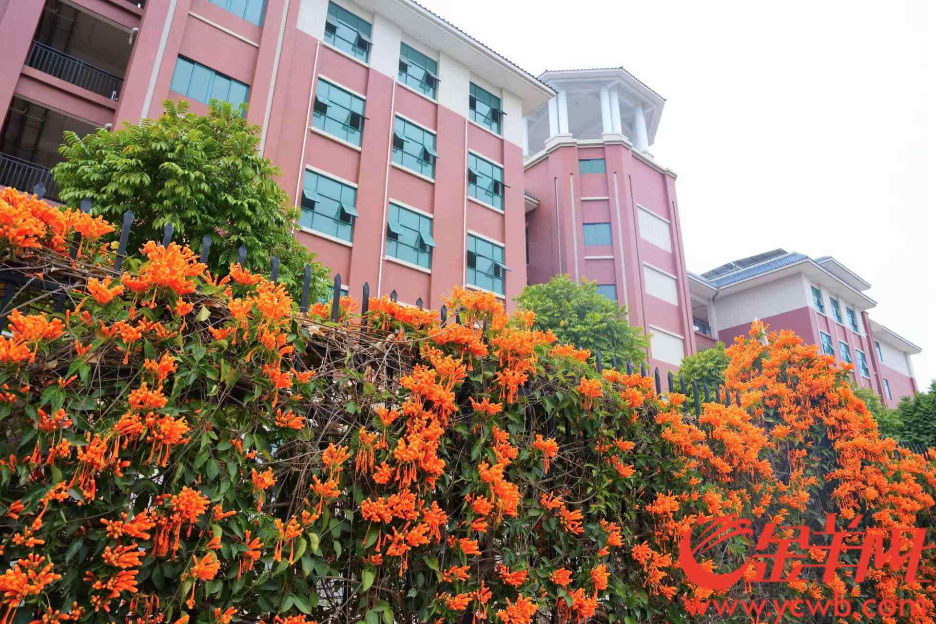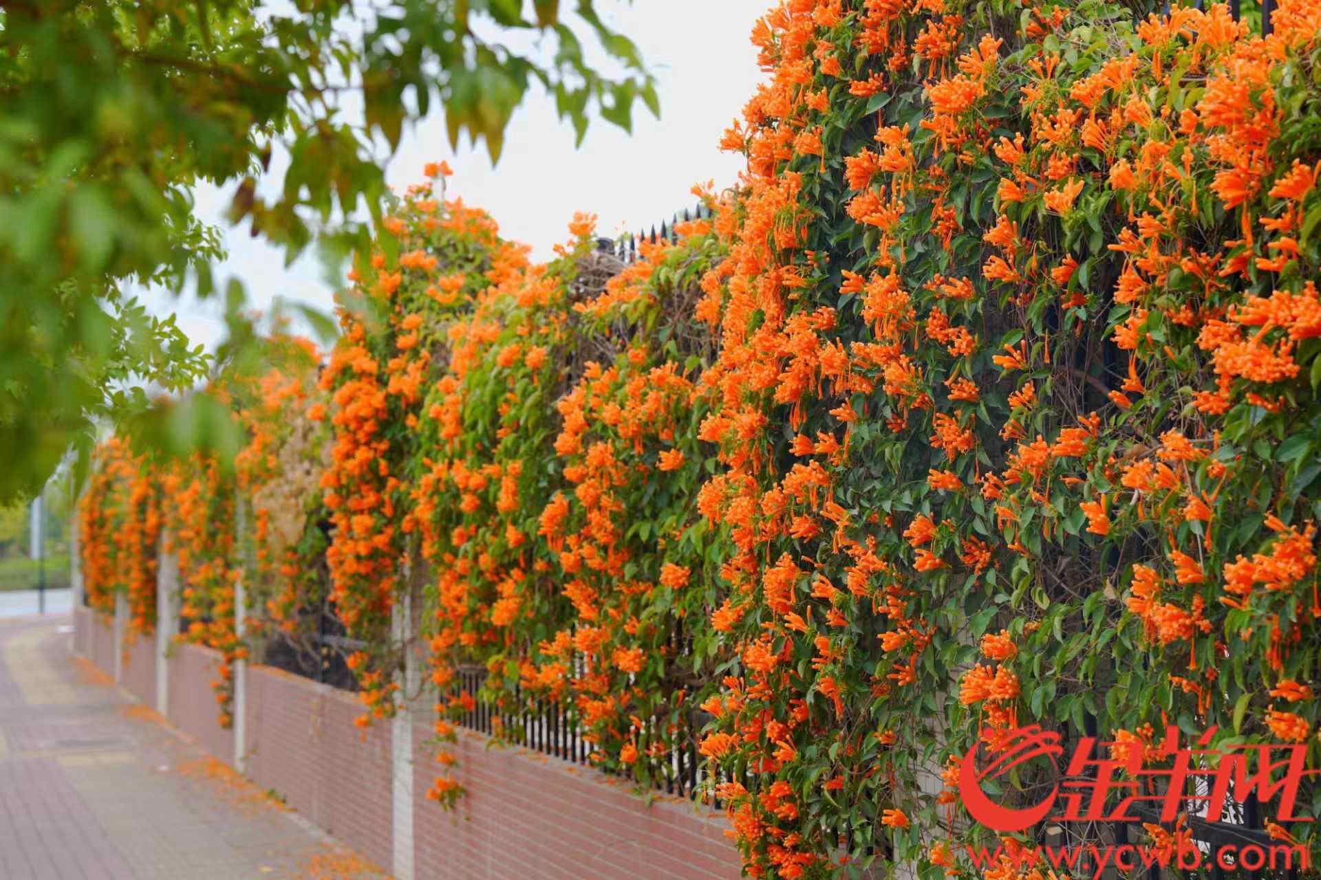 春日里,培献中学外的铁栏杆上,攀着一片橙色的瀑布。千万朵炮仗花挣脱花萼的桎梏,将细长的筒状花瓣舒展成喷射状的星芒,像是谁把爆竹拆散在春风里,炸出一朵朵橙色焰火,把整面院墙化作熔化的朝霞。花朵在从校园里传来的读书声里组织着一场焰火,青春而绚丽、自由而热烈。