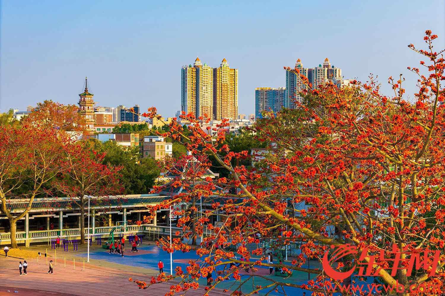 文塔七层的飞檐刚接住春信,古郡的檐角便已悬不住满城斑斓。今年泷江的春汛似乎比往年来得更早,铁色枝桠刺破薄雾,木棉花迸作万千赤焰,把江岸煅成熔铁炉。花盏倒扣在青砖黛瓦间,赤金琼浆随霞光倾泻,浸透了青春,染红了一座城。