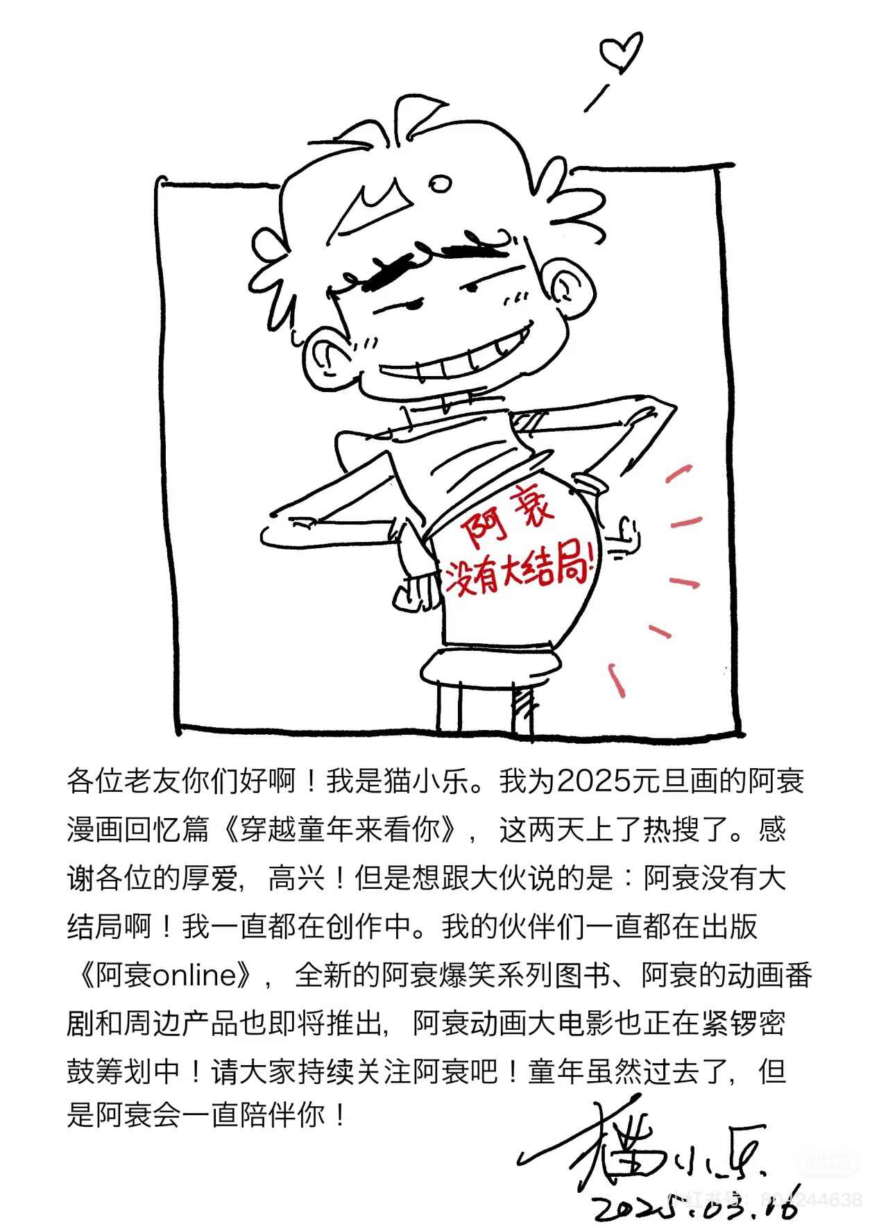 对此,猫小乐在回忆篇的结尾已有解答:“这不是《阿衰》大结局。快乐没有结局!”