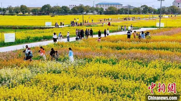 中新网樟树3月16日电 (熊锦阳)“春风一吹,菜花黄;酒香一飘,客满堂。”3月16日,以“七色花海 和美永泰”为主题的永泰镇第三届油菜花文化旅游节暨农产品消费节在江西省樟树市永泰镇举行。当地以彩色油菜花为媒,进一步激活乡村经济。