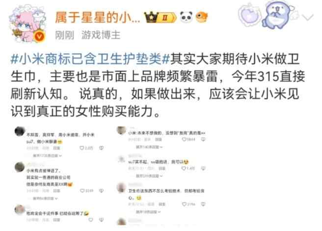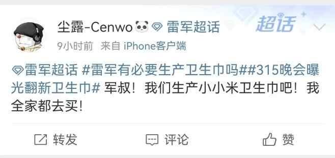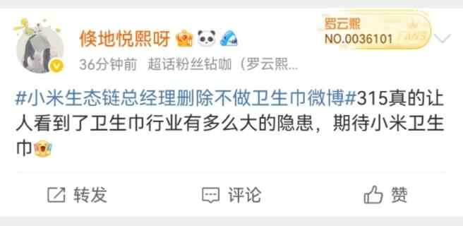 在卫生巾产业乱象被曝光后,大量消费者对行业信任度下降,而雷军及小米高管社交平台却成了网友的“许愿池”,许多网友呼吁小米涉足卫生巾领域。也有不少网友在社交媒体平台“许愿”。