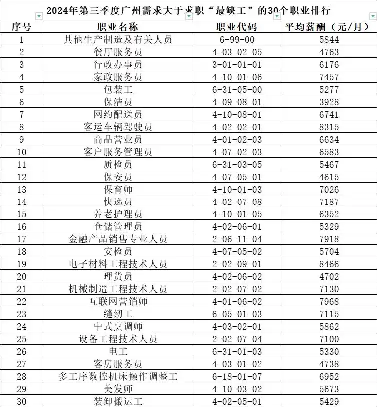 去年10月,广州人社局公开“最缺工”30个职位排行,揭开广东用工矛盾的一角:名单中,“其他生产制造及有关人员”高居首位,电子材料工程技术人员、机械制造工程技术人员也名列其中。
