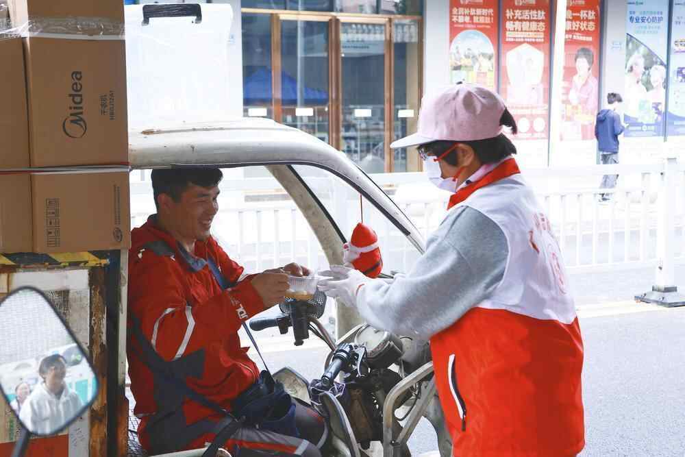 一位听障外卖小哥在收到社区党组织准备的暖心大礼包后感慨道:“小小心意,传递的是大大温暖。平日里我们总是给别人送货,今天却成了收货人,很感动!”