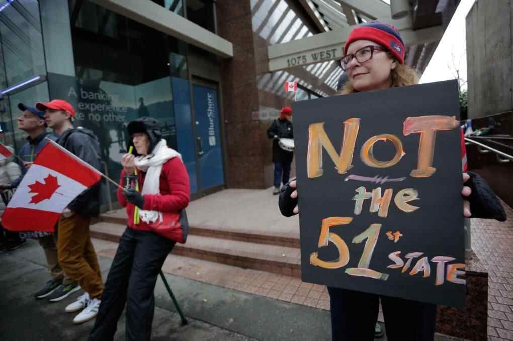 2025年2月15日,温哥华民众在加拿大国旗日当天举行集会,抗议美国关于吞并加拿大的言论及加征关税的威胁。新华社发(梁森摄)