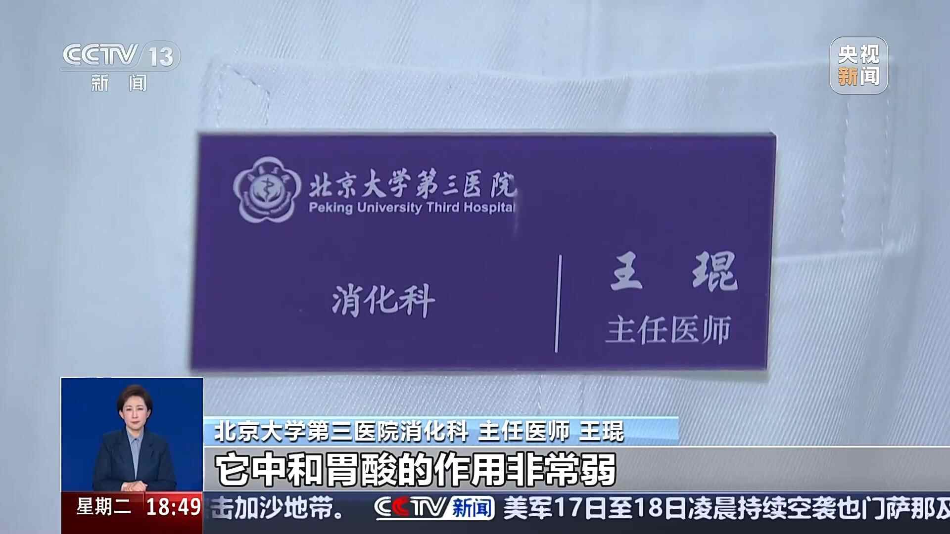 王琨:如果长期大量饮用,它反而会产生一些比如胃酸反跳这样一些反应。这就是说当你大量饮用苏打水以后,胃会自己感觉胃酸好像不够了,正常人体产生胃酸的细胞就会增生,导致胃酸大量分泌。在饮用苏打水的时候没觉得胃酸多,但是一旦停止了,就会感觉到胃酸的分泌,最后它会导致一些酸相关的疾病。