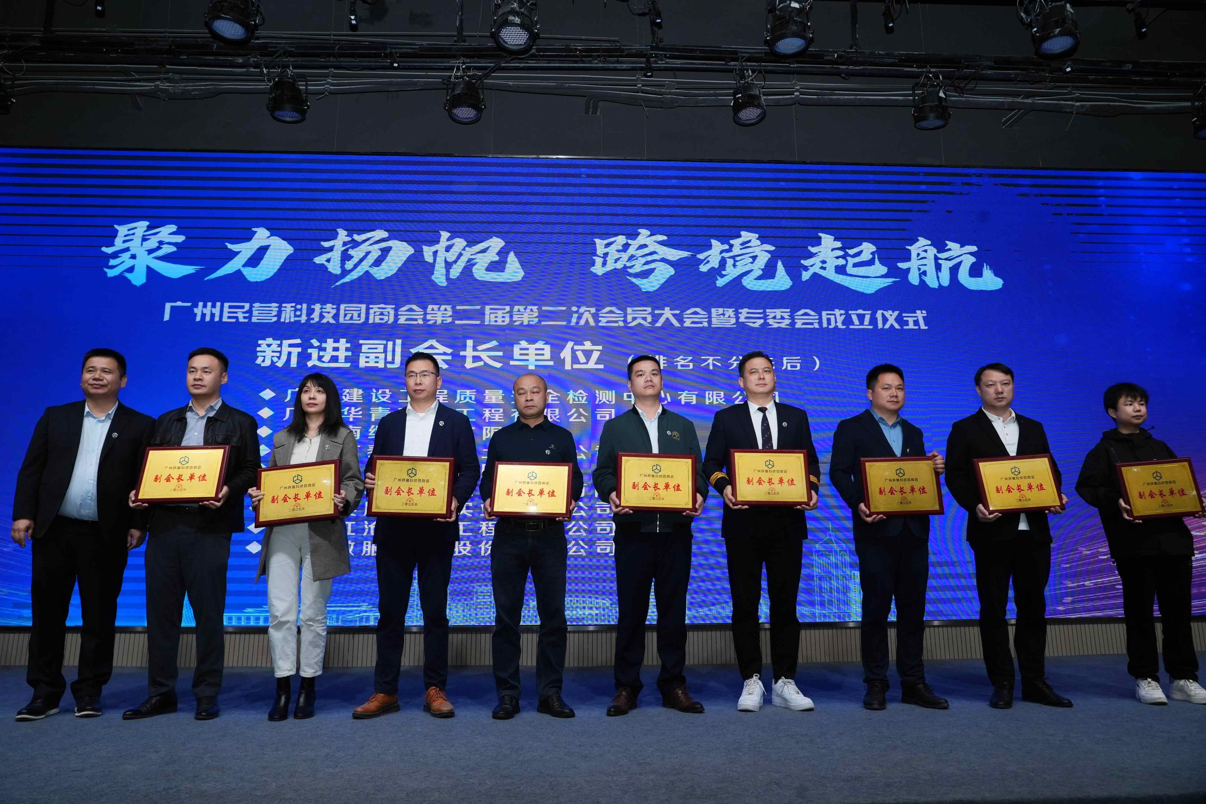 当天,大会表决通过34家副会长单位、10家理事单位及20家会员单位加入商会的决定,新成员单位涵盖建筑、金融、科技、文化等领域,君兆建设、中国银行广州分行、广东省新兴激光等离子体技术研究院等企业代表,分批次登台接受相应的授牌。这些新成员单位的加入,进一步壮大了民科园商会“朋友圈”,为跨行业资源整合、生态共建提供强劲支撑。