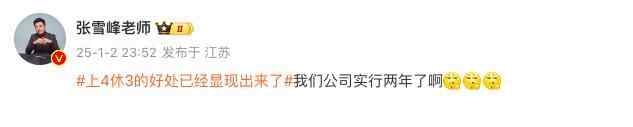 今年1月,网红名师张雪峰曾因公开表示其公司已经实行了两年“上4休3”而登上热搜。