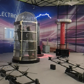 当电场或电磁波与“法拉第笼”接触时,笼内的自由电子会在导电材料表面重新排列,以中和外部电场的影响,确保笼内空间的电场强度维持在极低水平,有时甚至接近于零。