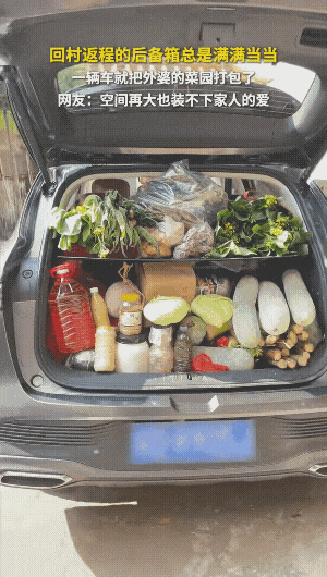又到了一年一度朋友圈“返程后备箱摄影大赛”,有网友一辆车就把外婆的菜园打包了,后备箱的容量终究抵不过外婆的惦念。一把青菜、几根腊肠都是家的味道,是无论走多远回头就能看见的温暖,网友评论:“再大的车也装不完外婆的爱”。