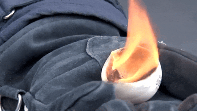 自热食品的加热包中含有遇湿易燃物品,属于易燃易爆物,乘火车时禁止托运和随身携带。下面,消防救援人员模拟了自热包受损后,其内部化学物质直接与水接触后的危险场景。