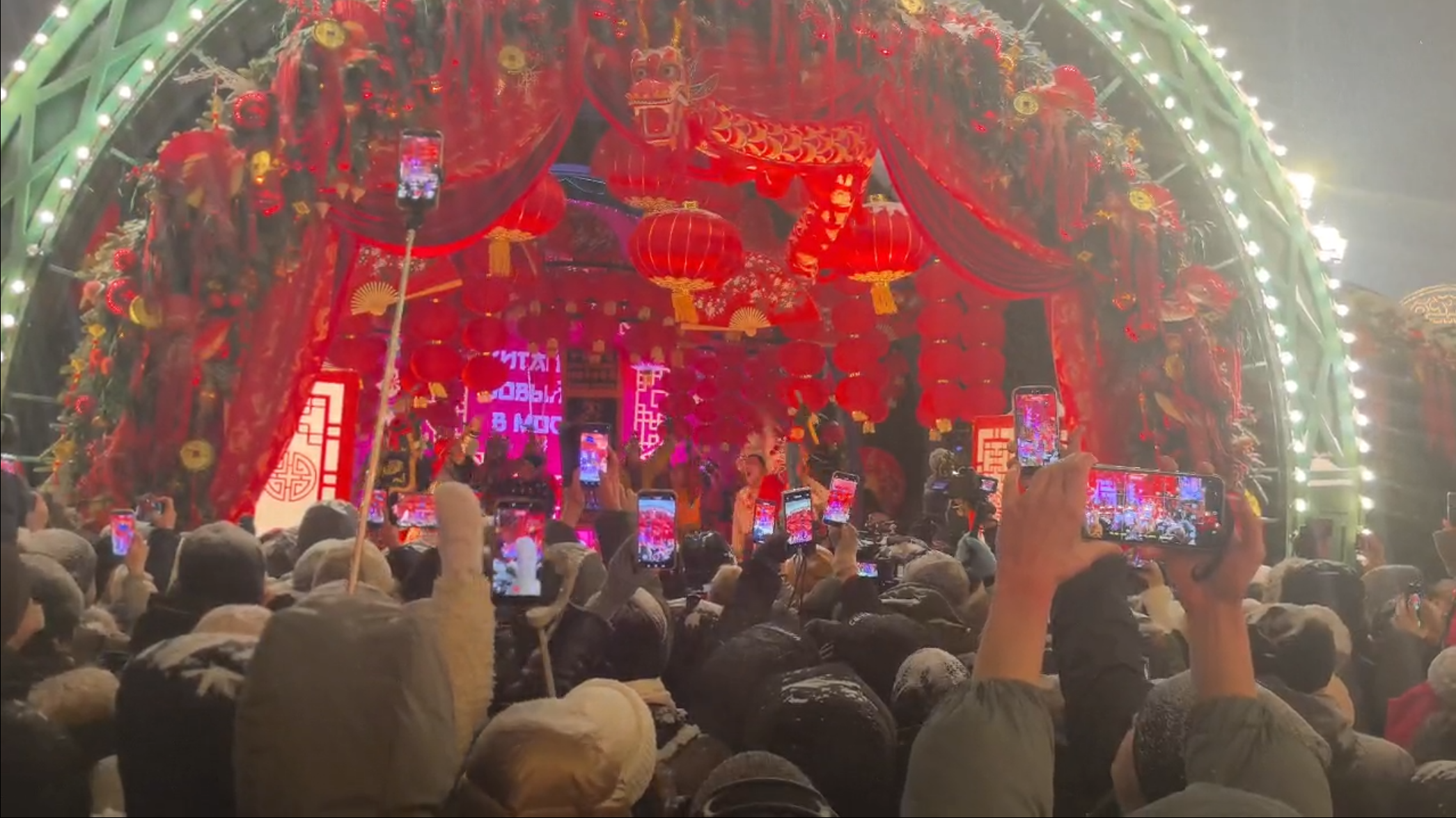 正月初一(当地时间2月17日)的莫斯科,零下十几度的严寒挡不住红场旁的“热浪”。
