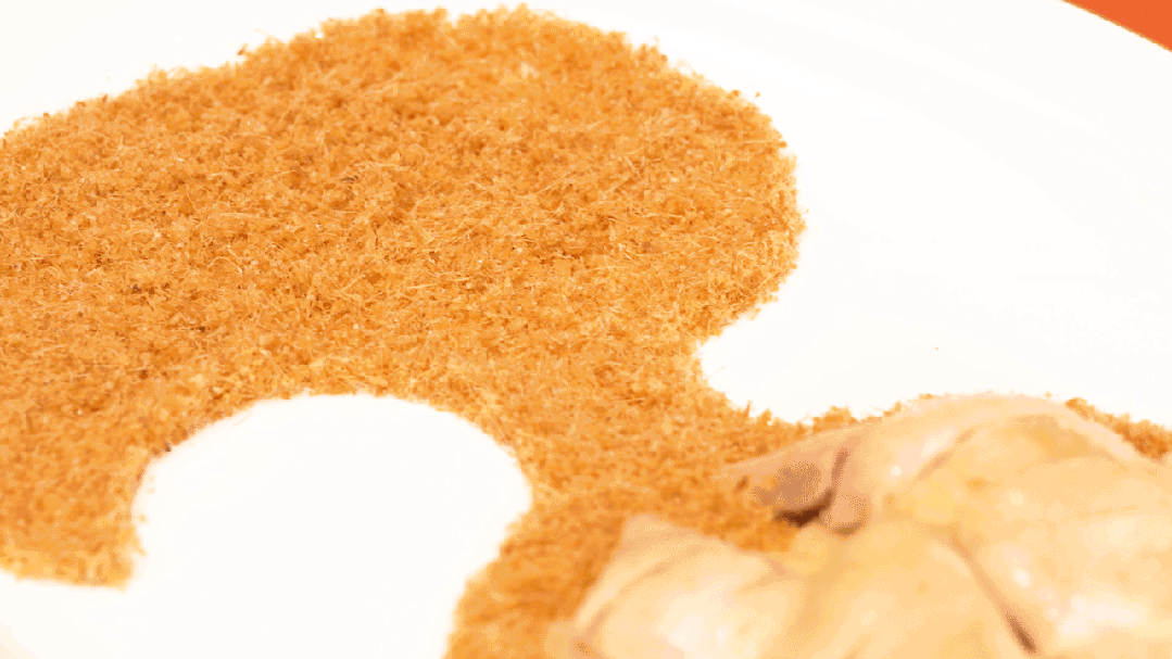 2.姜制蓉炸干,沥油下鸡粉10g调摆盘即可。