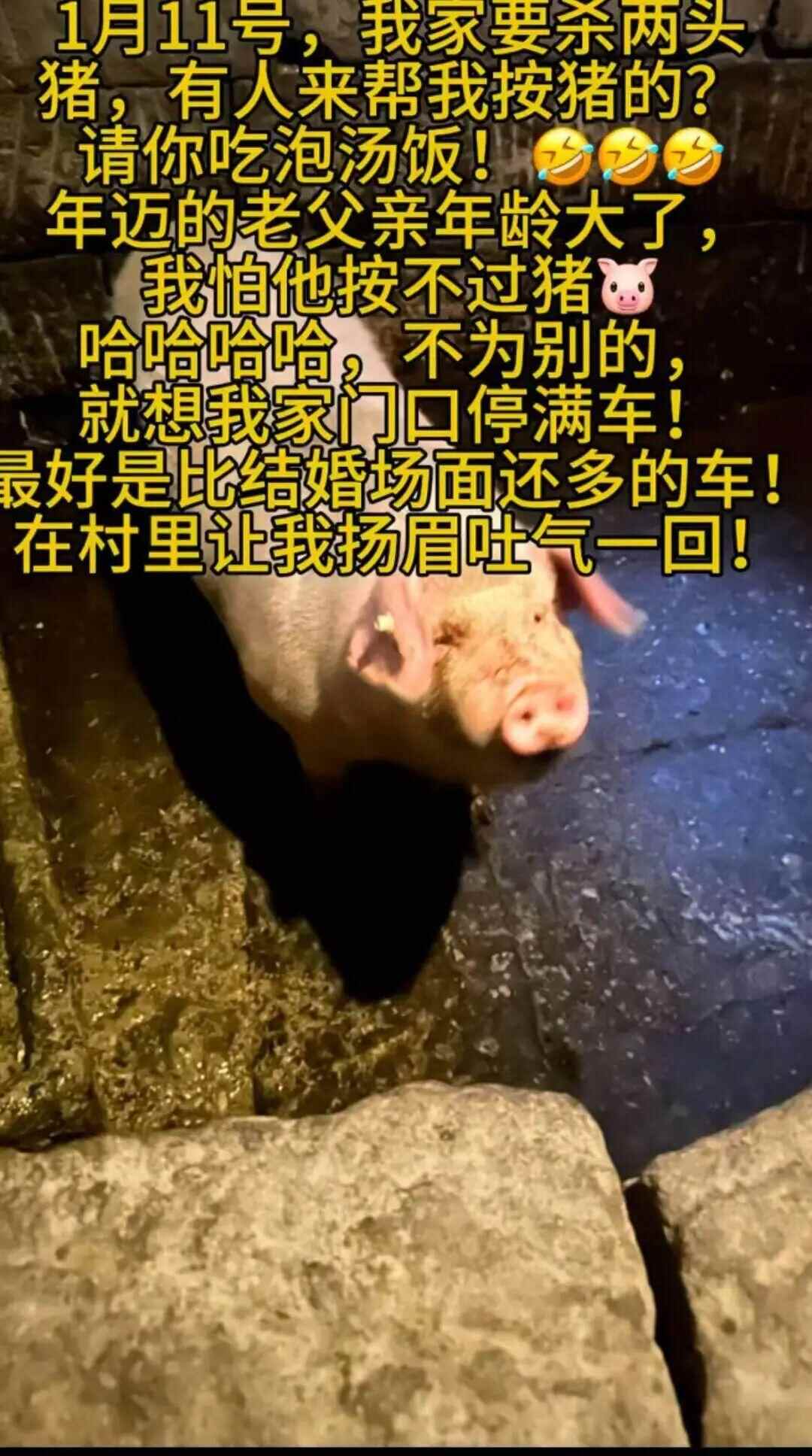 “年迈的老父亲年龄大了,我怕他按不过猪,哈哈哈哈,不为别的,就想我家门口停满车!最好是比结婚场面还多的车!在村里让我扬眉吐气一番”,呆呆在贴文中写到,希望有人来帮忙按猪,请吃汤泡饭,却意外得到全网响应,她组建的五个500人的刨猪汤群迅速爆满,接到了一波“泼天的流量”。