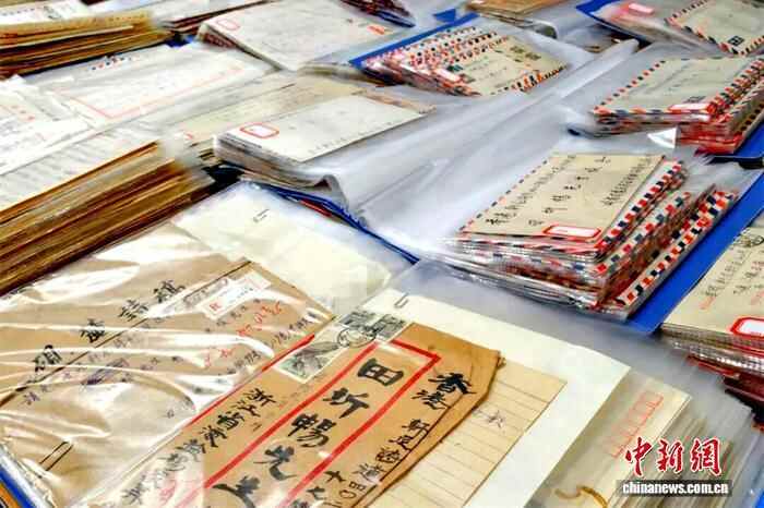 “两岸信使”田圻畅将收藏的3000多件两岸珍贵书信捐赠给中国闽台缘博物馆。图为整理归纳的部分书信。中国闽台缘博物馆供图